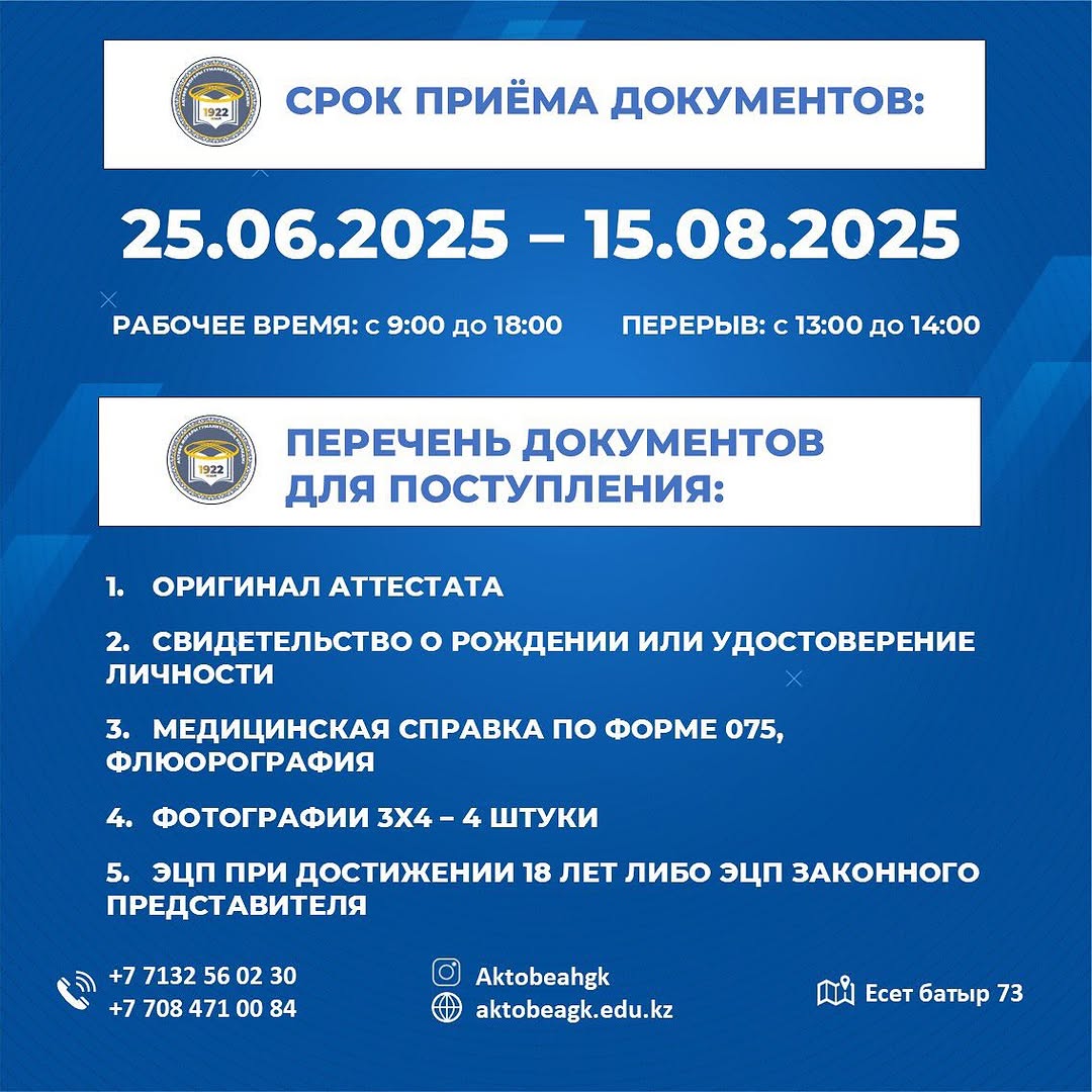 Құжаттарды қабылдау уақыты:25.06.2025-15.08.2025