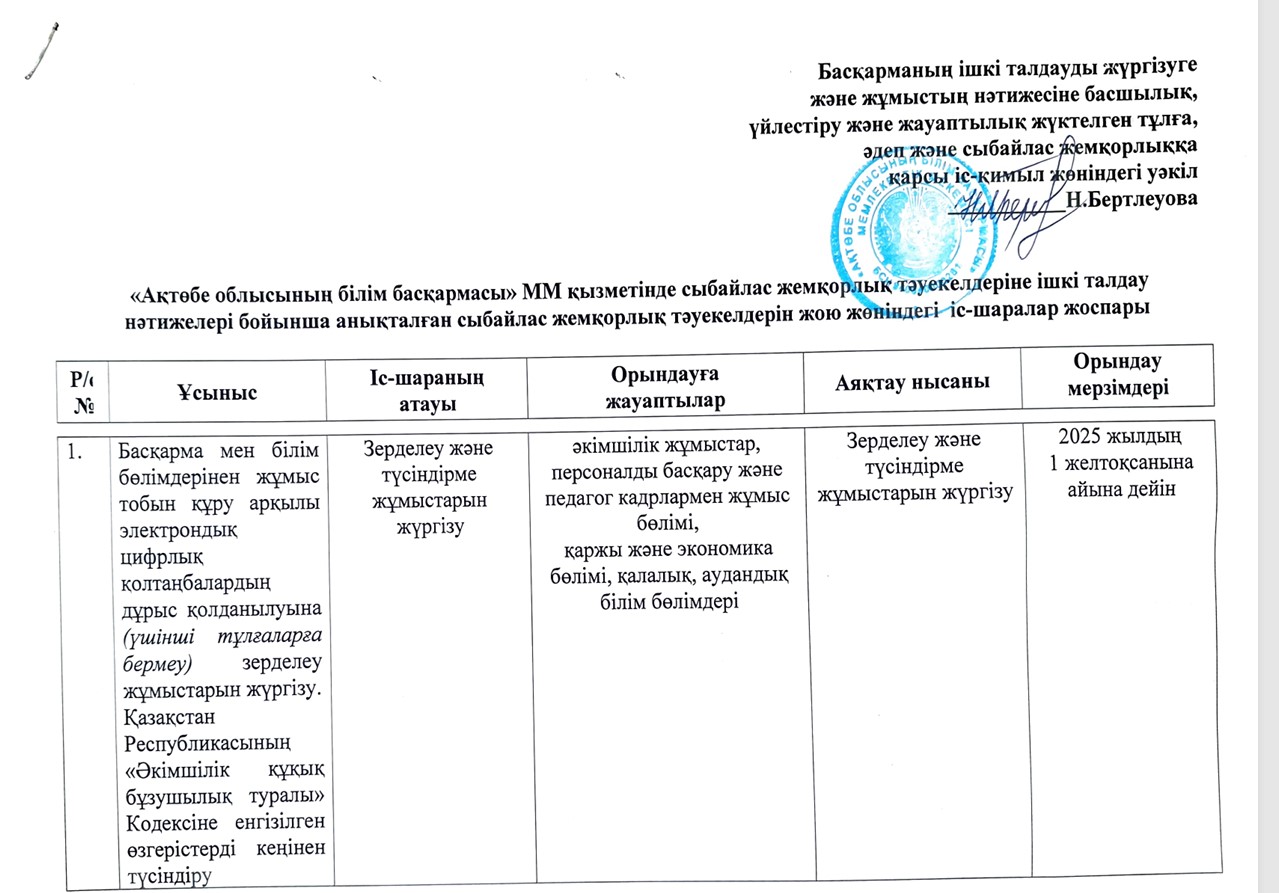 жемқорлық тәуекелдеріне ішкі талдау колледж