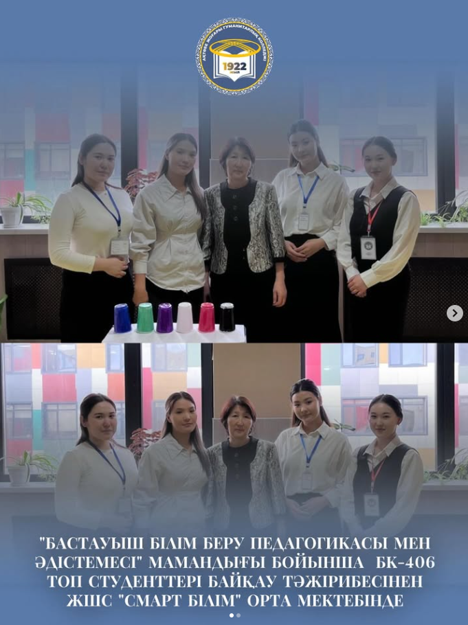 БК-406 топ студенттері байқау тәжірибесінен ЖШС «Смарт білім» орта мектебінде өтуде.